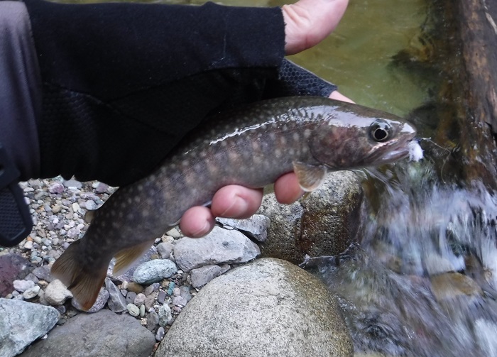 すると普通サイズの岩魚の走る光景が数か所で見られた